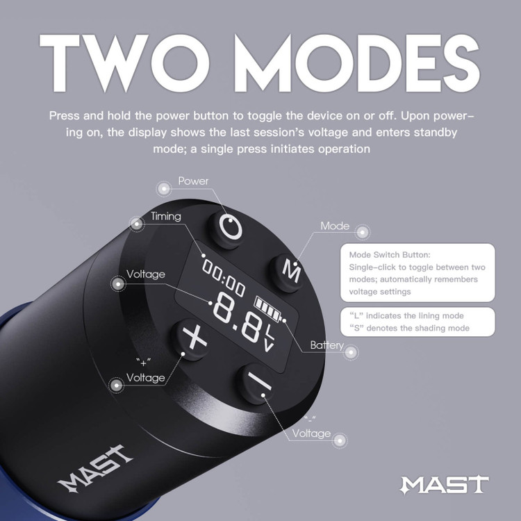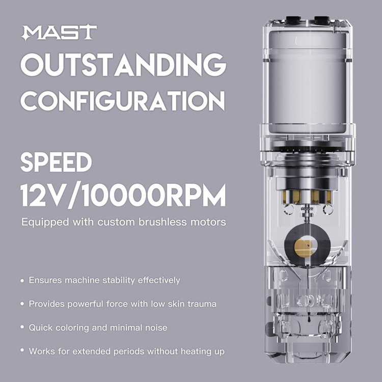 طراحی انقلابی بیسیم: قلم تاتو بیسیم Mast به هنرمندان خالکوبی آزادی از سیمها و کابلها را ارائه میدهد و توانایی آنها را برای ایجاد بدون محدودیت افزایش میدهد. دوام پیشرفته: ساخته شده از آلومینیوم درجه هوا فضا و دارای اکسیداسیون آنودایز شده، قلم خالکوبی Mast مقاوم در برابر سایش، مقاوم در برابر اثر انگشت و تمیز کردن آسان است و دوام ماندگار و ظاهری براق را تضمین می کند. حداقل نویز و رنگآمیزی سریع: مجهز به موتورهای سفارشی Mcore-A3، این دستگاه قلم خالکوبی بیصدا و کارآمد عمل میکند و رنگآمیزی سریع را امکانپذیر میکند و در عین حال آسیب پوستی کم را حفظ میکند و محیطی راحت را برای هنرمند و مشتری ایجاد میکند. تنظیم دقیق ولتاژ: الگوریتمهای سختافزار و نرمافزار مدار بازطراحی شده تنظیم سریع و دقیق ولتاژ را تضمین میکنند و عملکرد ثابت و پایداری را برای طرحهای خالکوبی بیعیب و نقص ارائه میدهند.